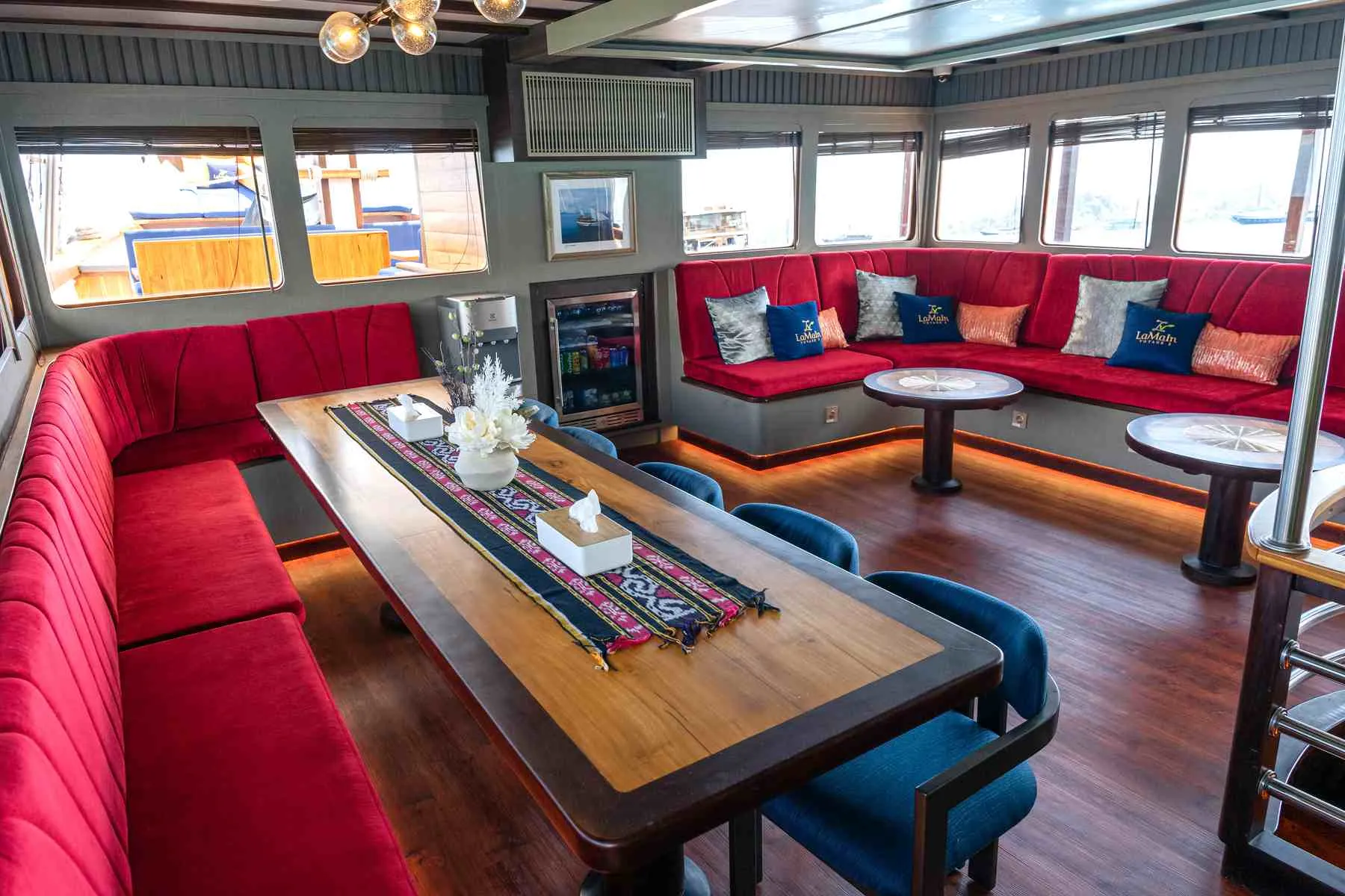 Step aboard Lamain Voyage 2 and indulge in unmatched luxury. Our boat features luxurious cabins, highlighted by a Master Cabin with a Jacuzzi, ensuring a trip of comfort and relaxation. Enjoy meals under the stars in our outdoor dining area, soak up the sun on our spacious deck, and savor exquisite dishes in our cozy indoor dining. Relax in our welcoming public spaces or sip your favorite drink at our sophisticated bar. Welcome to your dream cruise experience.