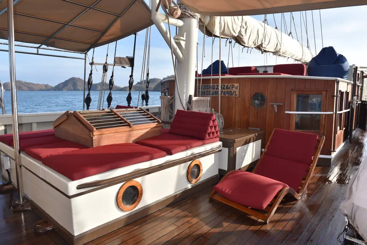 Entertainment options abound with a 49″ HD flat screen featuring a digital movie, music, and book library. Engage in leisurely pursuits with an array of board games available onboard. The wooden hull, spanning across 2 decks with a length of 31 meters, ensures stability and comfort throughout your voyage.